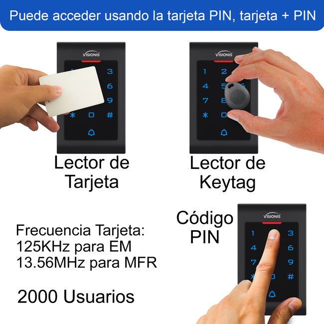 Con los Lectores/Teclados Uso Interior Standalone de Visionis tienes diferentes opciones tanto de dispositivo como de lenguaje para autorizar el acceso.