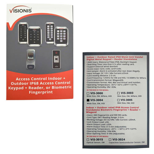 VIS-3005 – Teclado/Lector de Tarjetas Standalone para Uso en Interior y Exterior IP68 de Metal con Mini Controlador + Wiegand 26, Diseño Delgado, Sin Software, Tarjetas EM, 1000 Usuarios